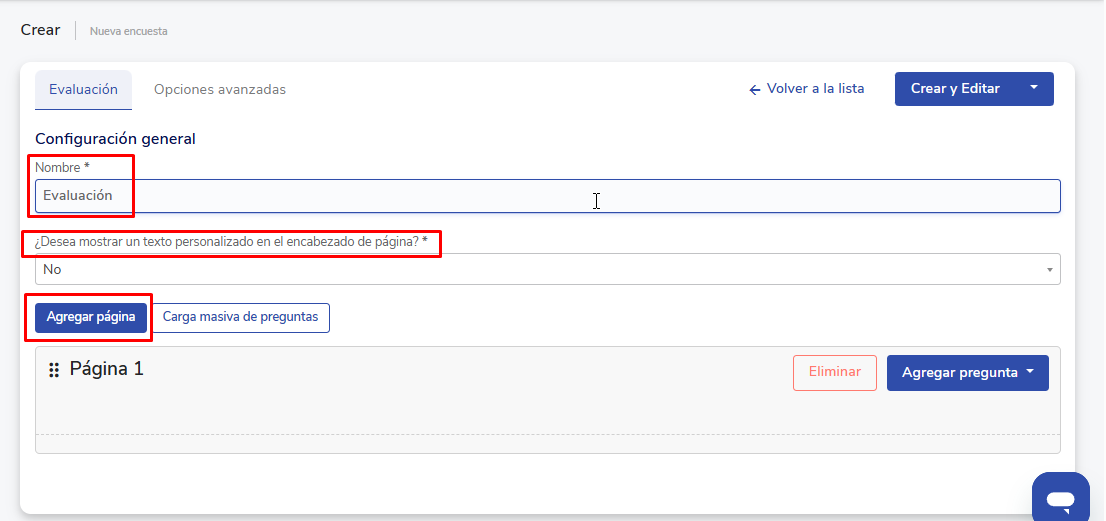 2. Crea una nueva evaluación