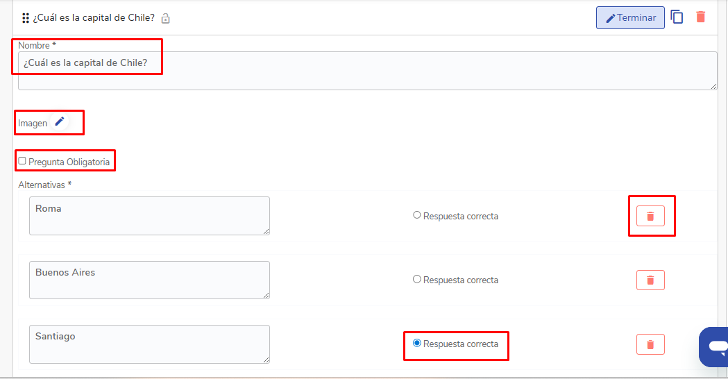 - Marque a caixaPergunta obligatoriase desejar que a pergunta deva ser respondida obrigatoriamente.