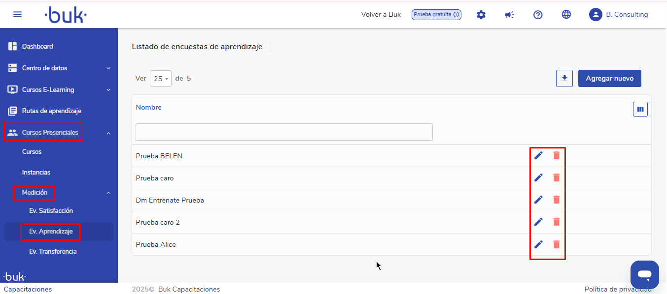 1. Accede a la sección de evaluación de aprendizaje