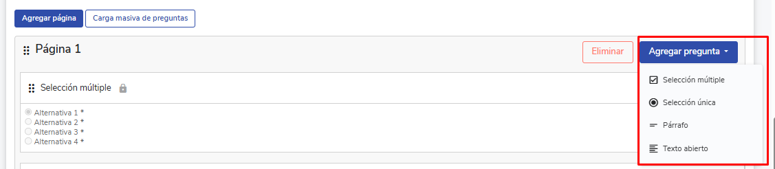 - Selección múltiple: Permite selecionar mais de uma resposta correta.