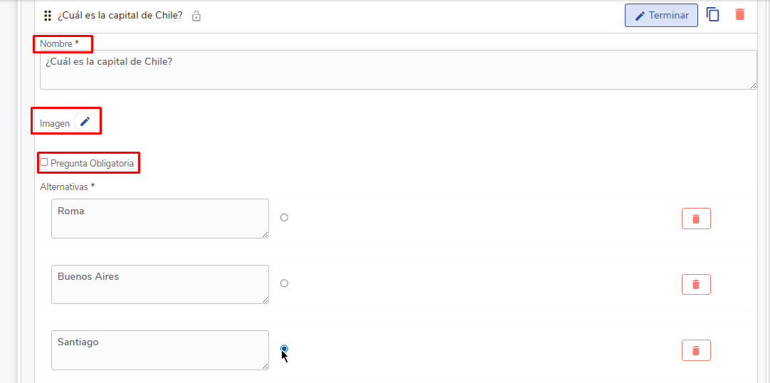- Inserir alternativas e definir as corretas