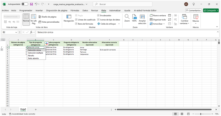 3. Carga massiva de preguntas
