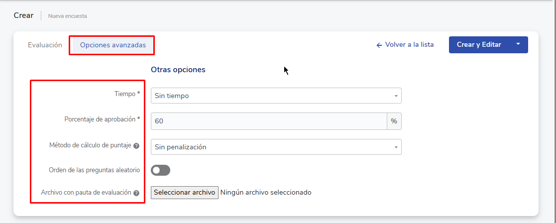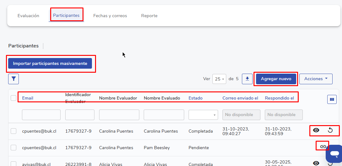 - De forma individual, atribuindo também um avaliador (com o botão Adicionar nuevo)