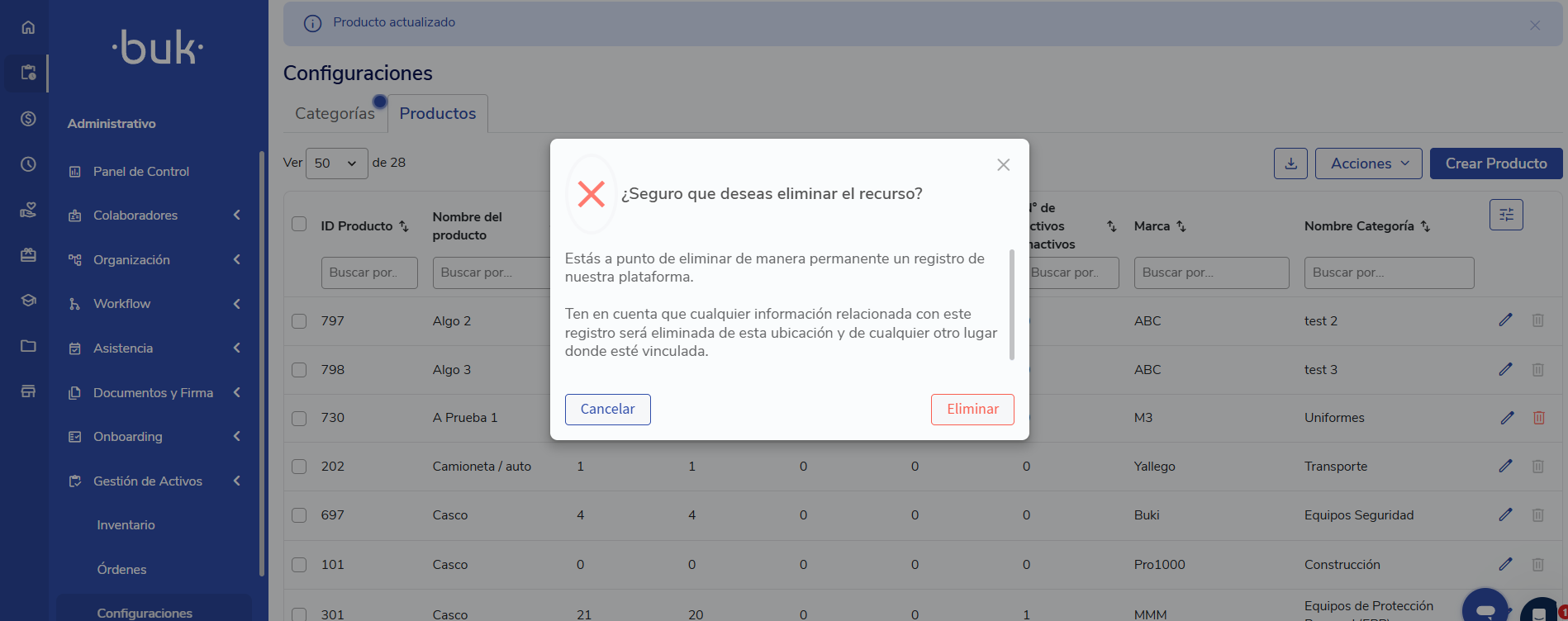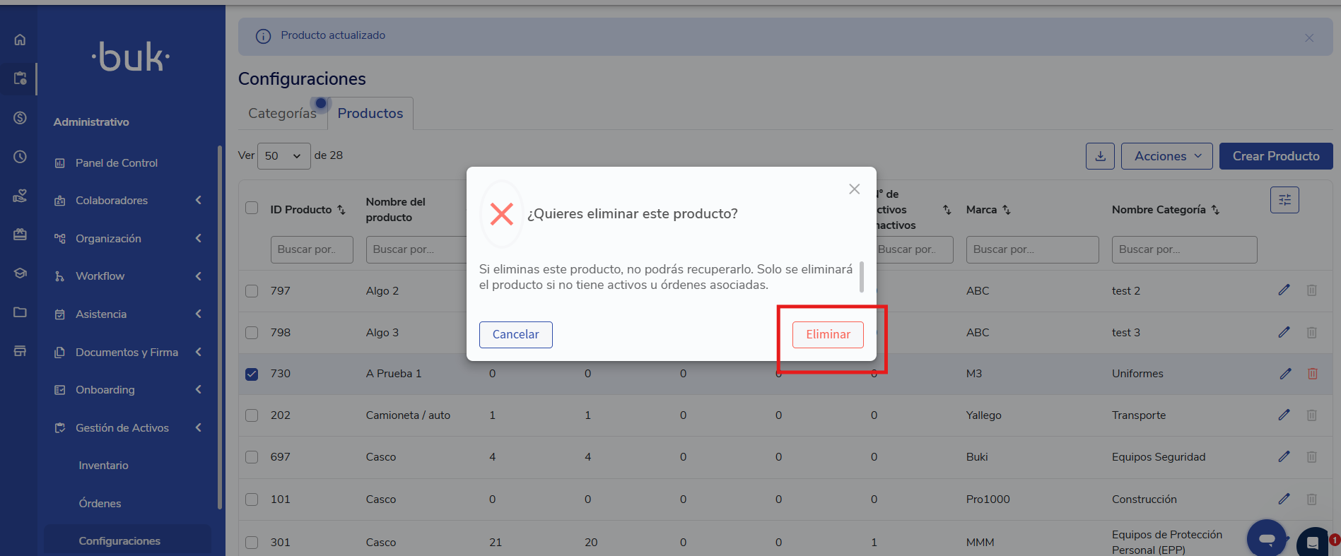 👍Validação 2: Só será possível excluir Produtos quando não existirem Ativos associados a ele.