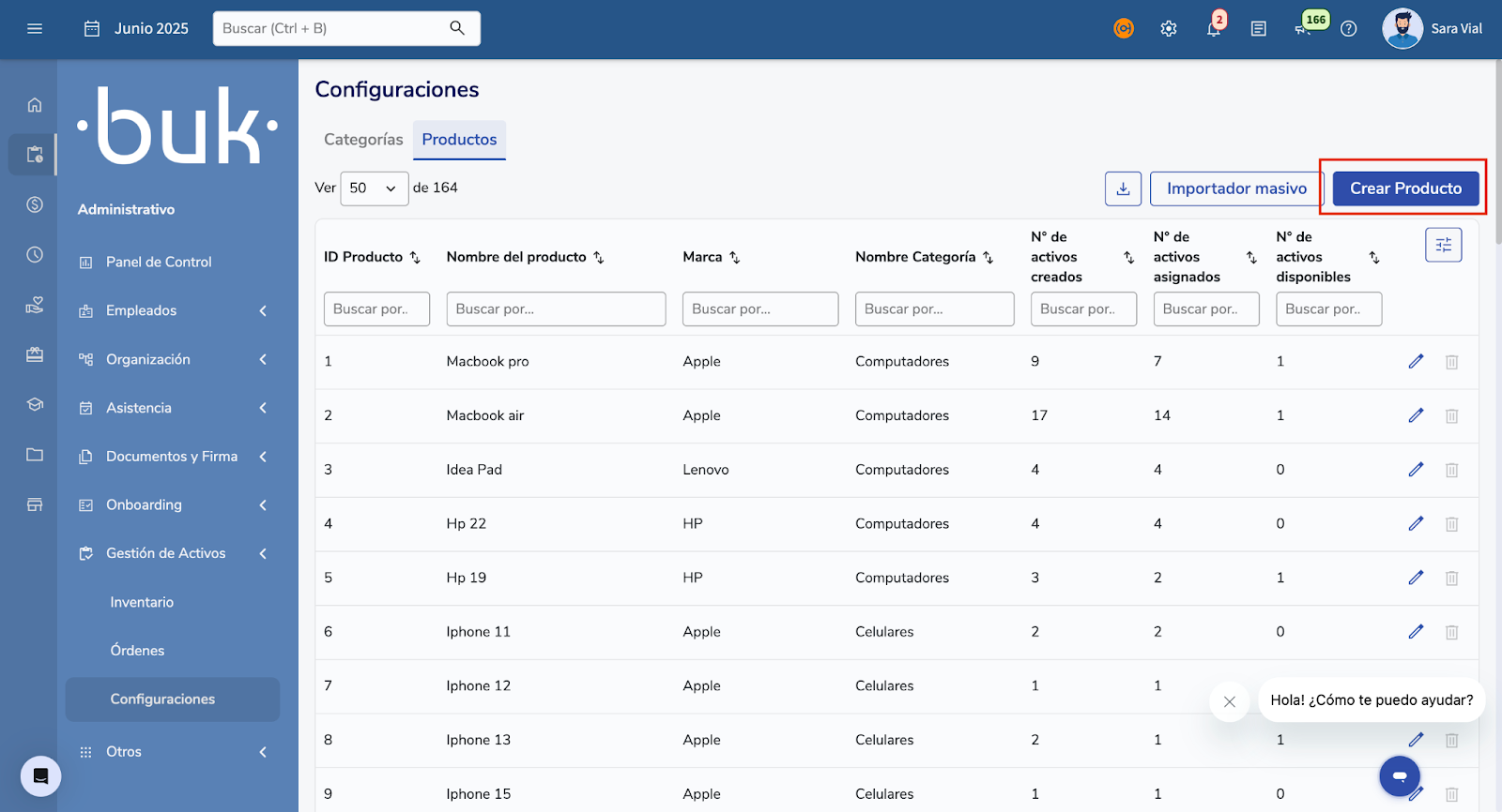 - Estoque: Na visualização do Produto, você pode ver o número de ativos criados, atribuídos e disponíveis; com essa informação, você pode ver de forma consolidada o estoque, evitar rupturas e programar suas compras.