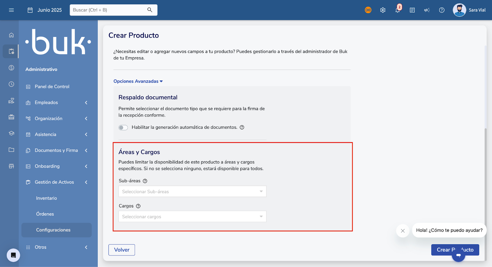 - Vincular área e cargo:Dentro de cada Produto você poderá selecionar a quais áreas e cargos deve ser associado. Esta funcionalidade é apenas informativa para padronizar quais Produtos cada área, cargo ou função deve ter.