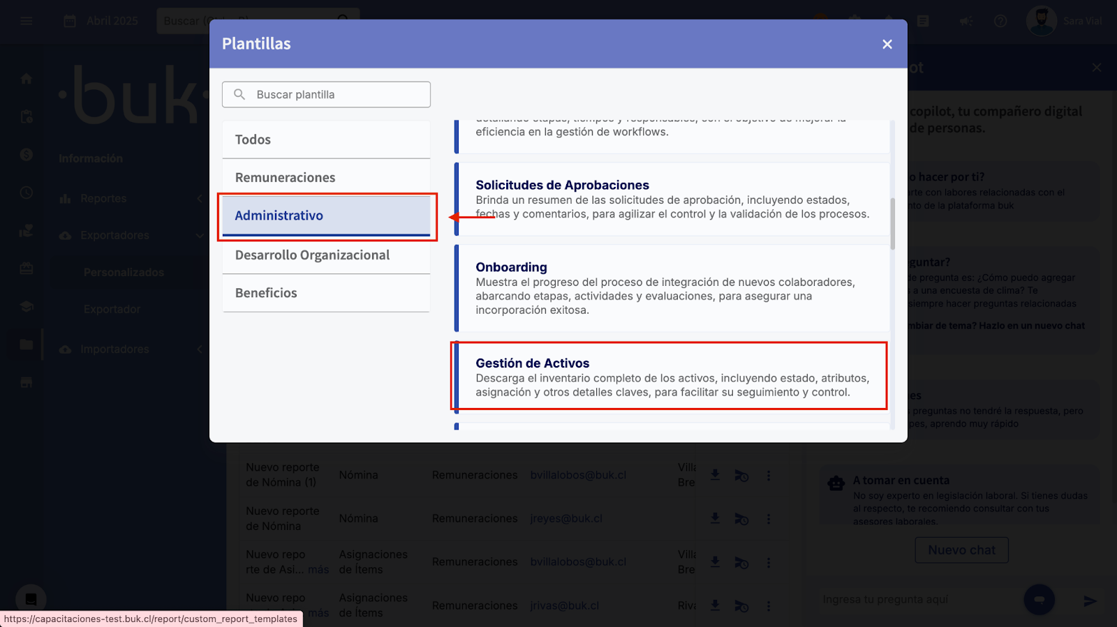 - Selecione a aba Administrativo, opção “Gestão de Ativos”