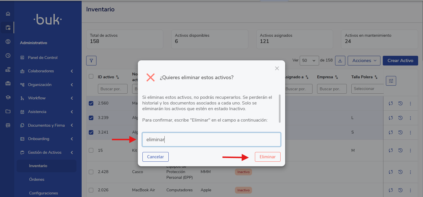 Esta ação agora pode ser realizada em massa, permitindo excluir vários ativos no estado "Inativo" simultaneamente a partir do inventário.