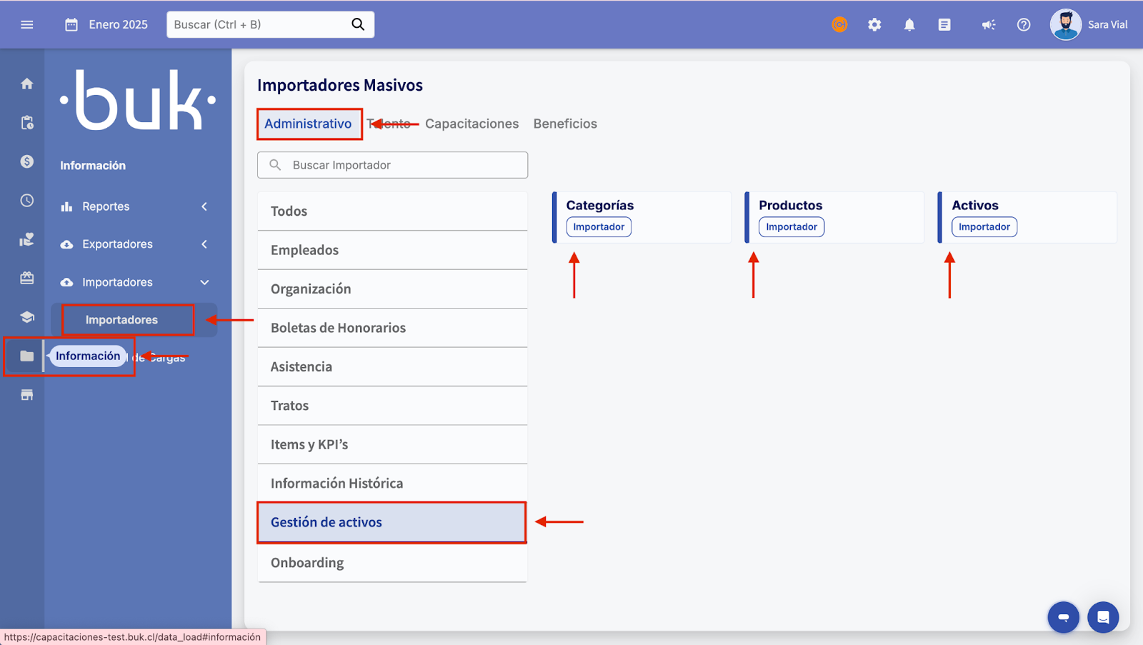 🖇️(📑Menu lateral >📋Informação >↘️Importadores >↘️Importadores >Aba Administrativo >Gestão de ativos)