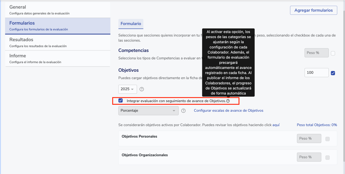 Integrar avaliação com acompanhamento do avanço de Objetivos, permitirá que os formulários de avaliação nos quais os objetivos são avaliados sejam preenchidos automaticamente com o último percentual de avanço registrado na ficha do avaliado.💡