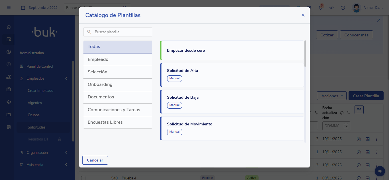 UnaSolicitudé um fluxo flexível que se inicia quando um usuário preenche um formulário dentro do Buk.
