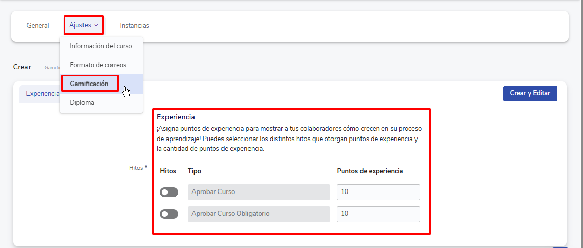 Gamificação:Ative ou desative marcos que concedem pontos por cumprimento.