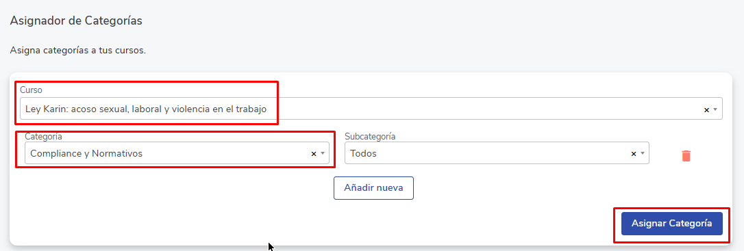 Dentro do mesmo módulo, você pode associar cursos E-learning às categorias recém-criadas.