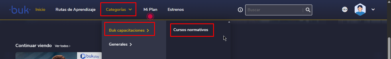 Uma vez configuradas, as categorias aparecerão na seçãoCategorias,do menu superior, dentro do portal do colaborador. Lá, poderão explorar e acessar facilmente os cursos classificados por temática ou área de interesse.