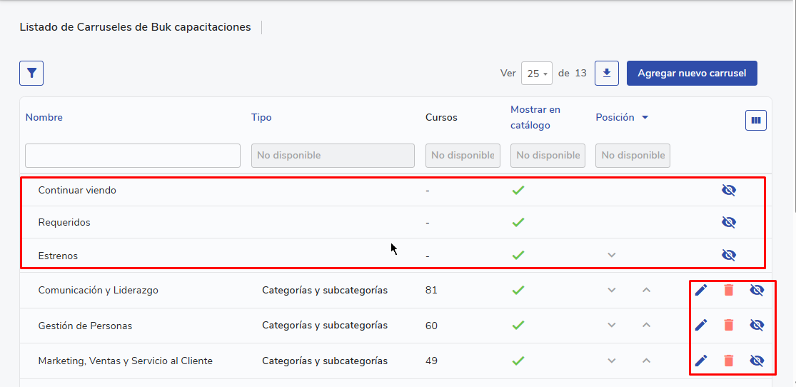 Este artigo foi projetado para orientar os usuários com o papel desuperadministradorna configuração de carrosséis de cursos dentro do LMS. Os carrosséis permitem destacar conteúdos-chave na tela inicial do colaborador, facilitando o acesso a cursos relevantes, novos ou obrigatórios de acordo com os interesses ou necessidades de formação da organização. O alcance deste procedimento se limita à criação, edição, organização e visibilidade dos carrosséis no portal do colaborador.
