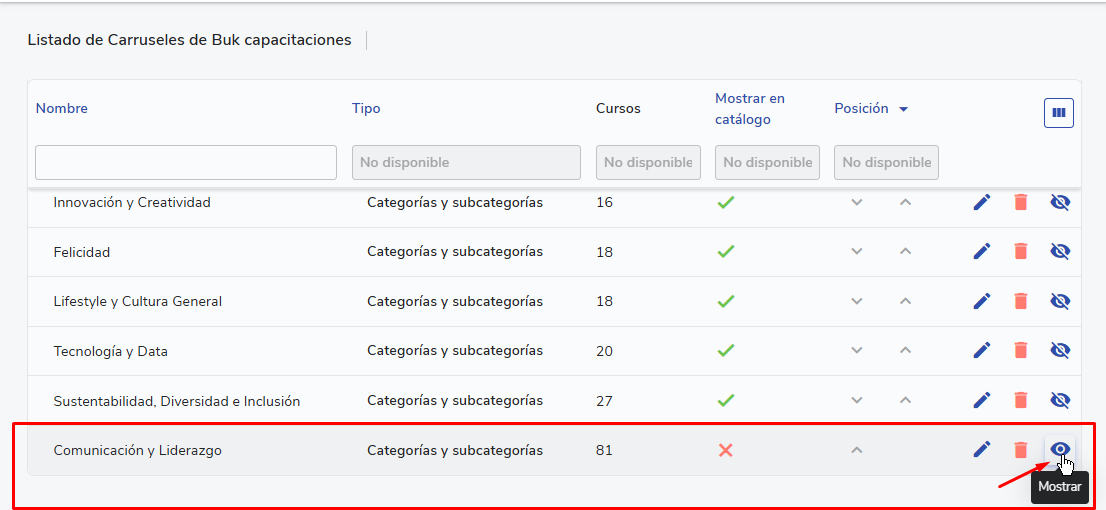 - Ativar ou desativara visibilidade de um carrossel no catálogo.